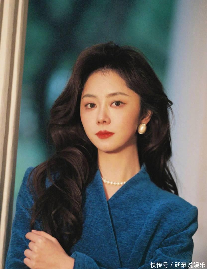 谭松韵选择了珍珠元素点缀耳畔,圆润的珍珠耳饰与丝绒材质相得益彰,既提升了整体造型的精致度,又带出几分温婉柔和的气质。发型则是标志性的大波浪卷发,蓬松的弧度自然垂落肩头,不仅修饰脸型,更烘托出浓郁的复古氛围。