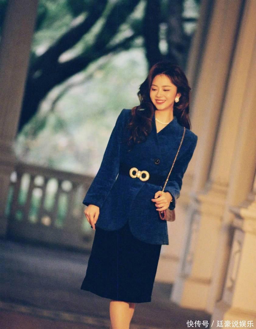 谭松韵一组复古风格写真释出,整体造型充满怀旧港风韵味,令人眼前一亮。她身着一袭深蓝色丝绒西装,面料质感柔和,在光线映衬下泛着隐隐光泽,更添复古优雅气息。西装剪裁利落,肩部线条自然流畅,衬托出她纤细的身形。